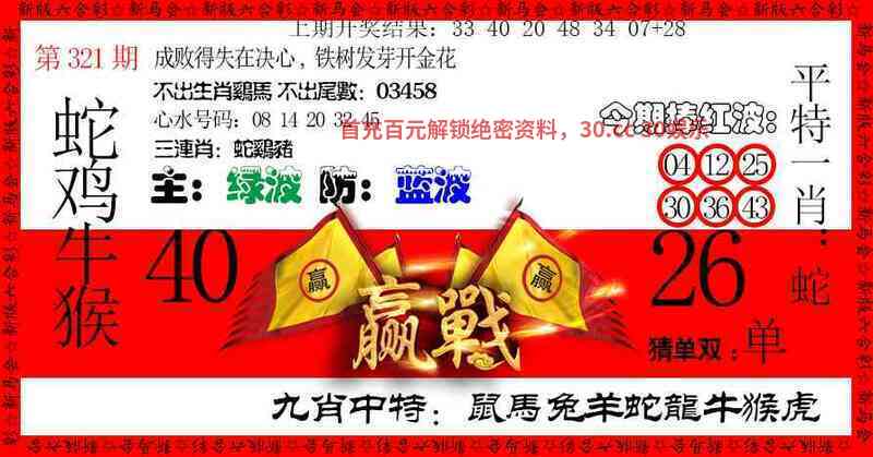 321期:九肖【牛马鼠猴猪蛇虎鸡】开:羊23中
